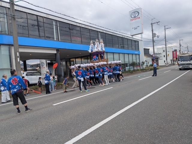 だんだんと音が近づいてきて、ついに豊岡店の前にもだんじりが!!!(`・ω・´)