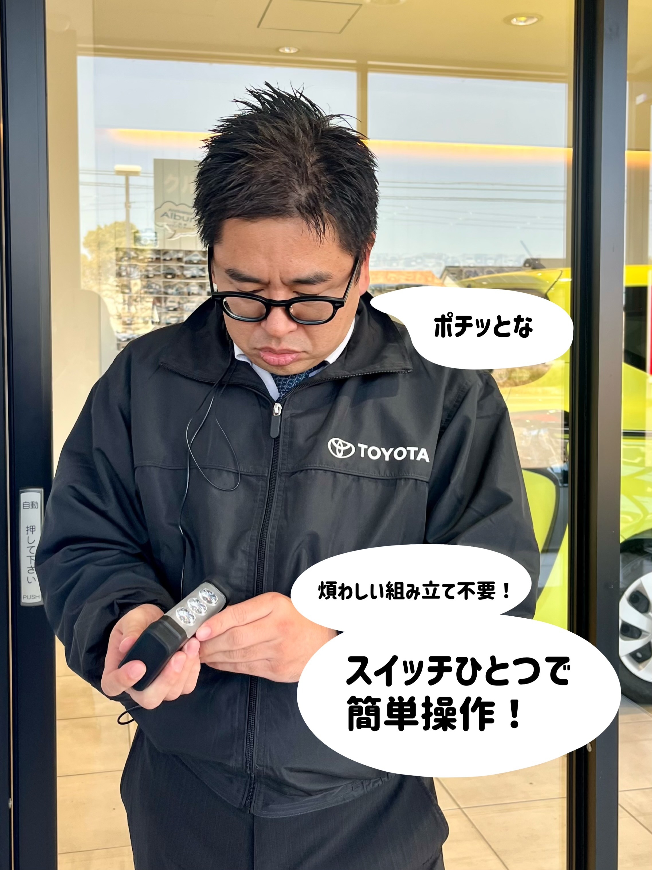 組み立て不要!スイッチひとつで簡単操作なのでトラブル発生時もあんしんです🌈