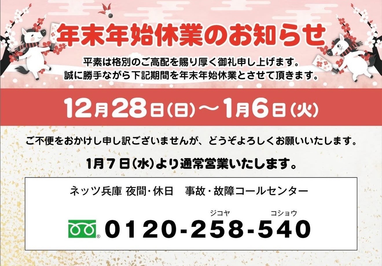本日は年末年始休業のお知らせです⛄