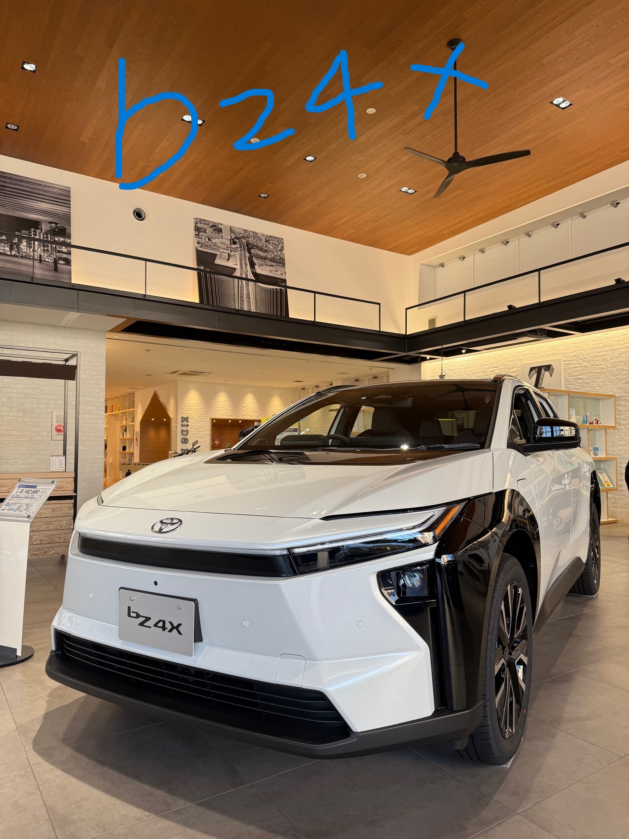 ショールームにトヨタの電気自動車「bz4x」を展示しています🚗✨
