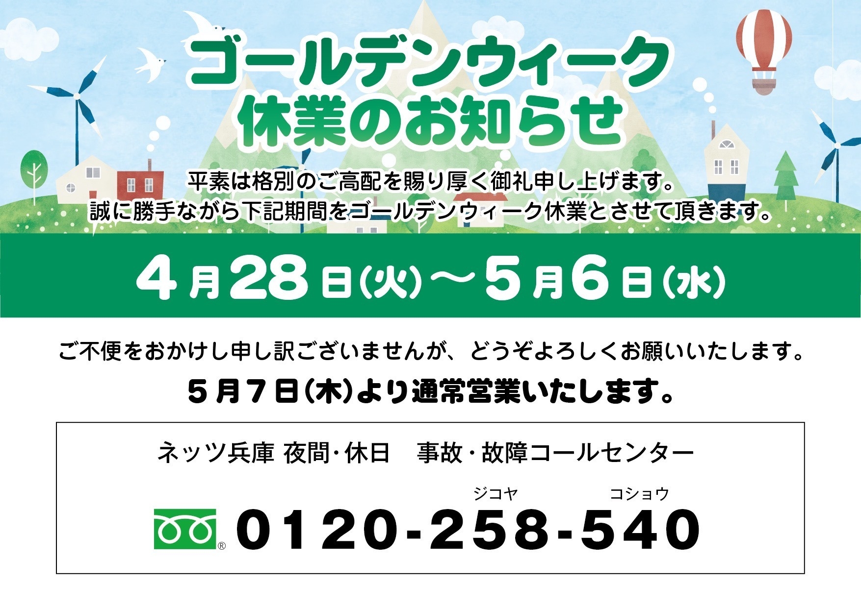 GW休業期間のお知らせ🌿🌿🌿