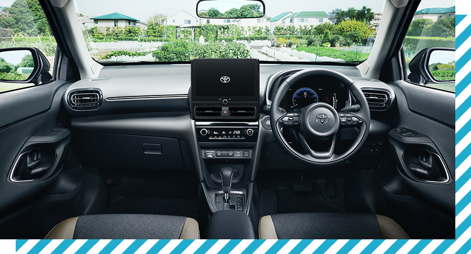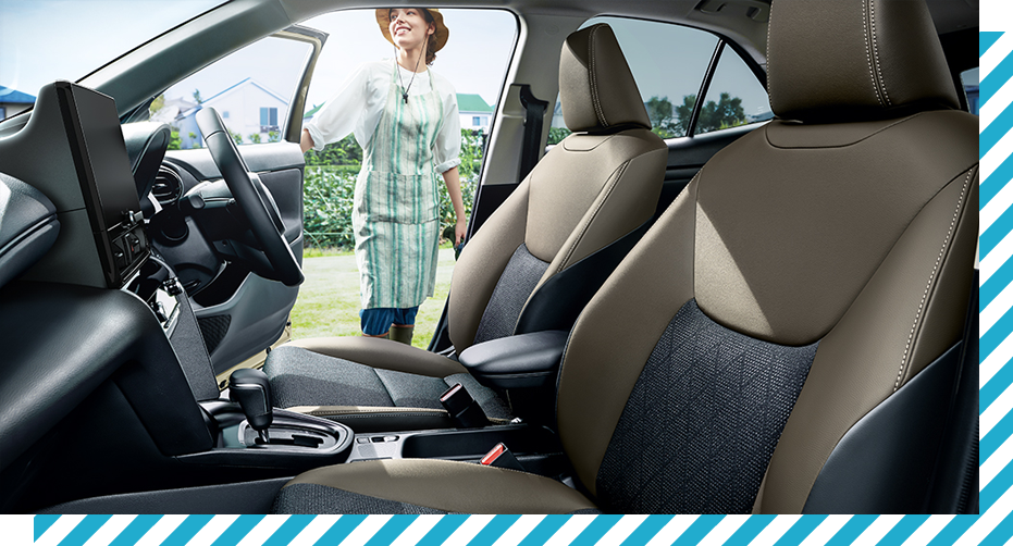 ヤリスクロスの心地よさと機能性を追求した室内は、乗り込む時の負担軽減や運転席を好みの状態に調整できるなど無駄なストレスを軽減し、快適なドライブをさりげなくサポートします。