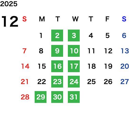 【12月30日 (水)~1月4日 (水)】の6日間、全店休業いたします。