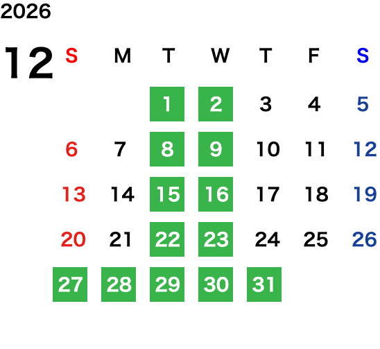 なお、休業期間中は各種お問合せ・リクエストへのご対応はできかねます。